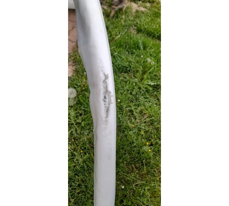 Краска на трубе содрана до металла.Оплетка внизу кресла порвана.