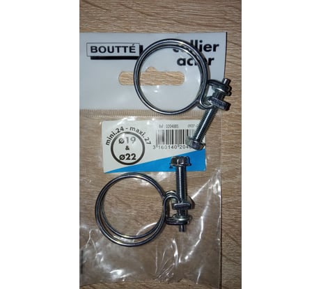 Двойной хомут Boutte стальная нить, 19-22 мм, 2 шт. 0204885 - соединительный элемент, применяемый для крепления и герметизации соединения шлангов, патрубков и других жёстких и гибких трубопроводов.