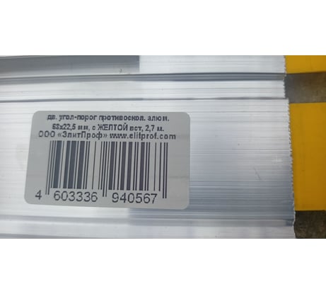 Двойной противоскользящий алюминиевый угол-порог ООО Элитпроф ECO 68x22,5 мм, с желтой вставкой, 2,7 м АДУ 68х22,5 Ж 270