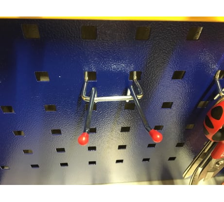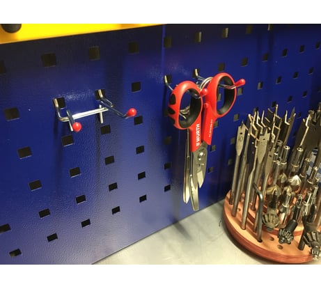 Двойной крючок подходит для подвеса молотков, ножниц с большими ушками...