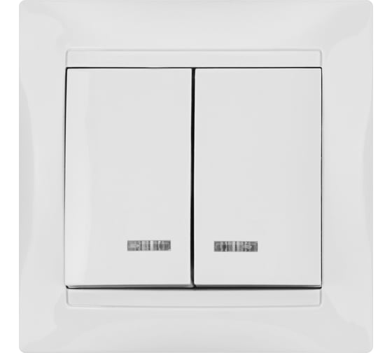 Двухклавишный выключатель TDM ELECTRIC с подсветкой, белый Лама SQ1815-0005