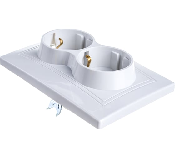 - Двухместная розетка АБК-СИЛА с заземляющим контактом 16А 220В "ПАНДОРА" белая 5401505 имеет эстетичный внешний вид.