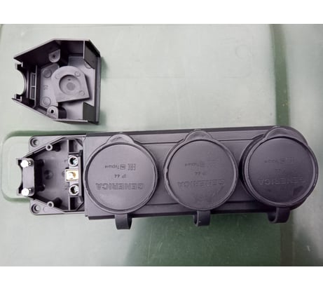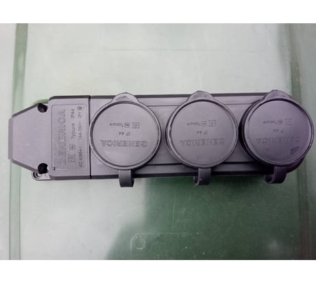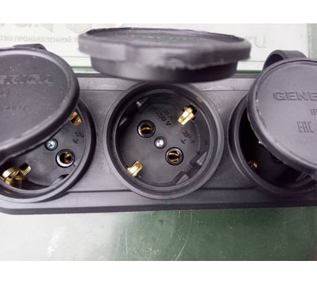 Двухместная розетка (колодка) GENERICA с защитной крышкой 16а ip44 черная ERK20-016-02-44-K02-G