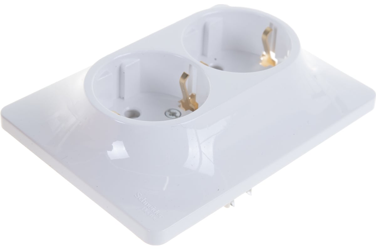 Двухместная розетка Systeme Electric СП Glossa защ. шторки, с заземлением, в сборе белая GSL000126