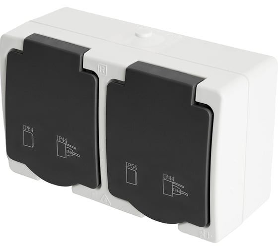 Расходные материалы для двухместной розетки STEKKER с заземл контактом, открытой установки, 250 В, 16 А, серый/графит 32754