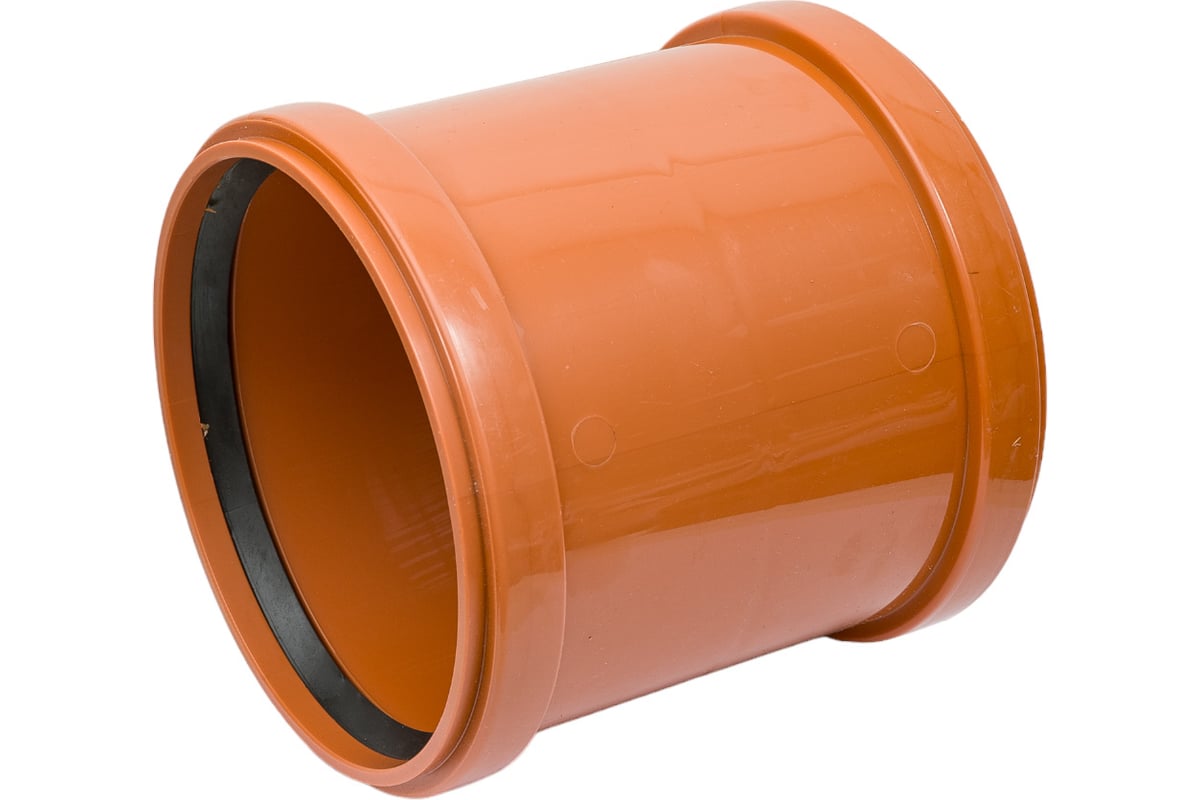 Двухраструбная муфта LAMMIN НК 160 Lm36010000160 для систем наружной канализации служит для соединения труб, не имеющих раструб. Упор посередине обеспечивает нужную глубину соединения обеих труб.