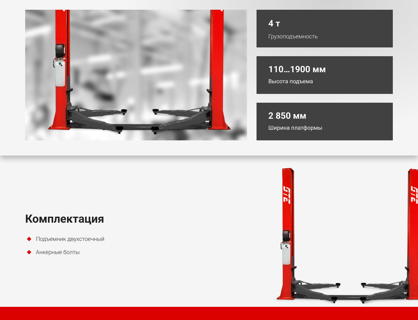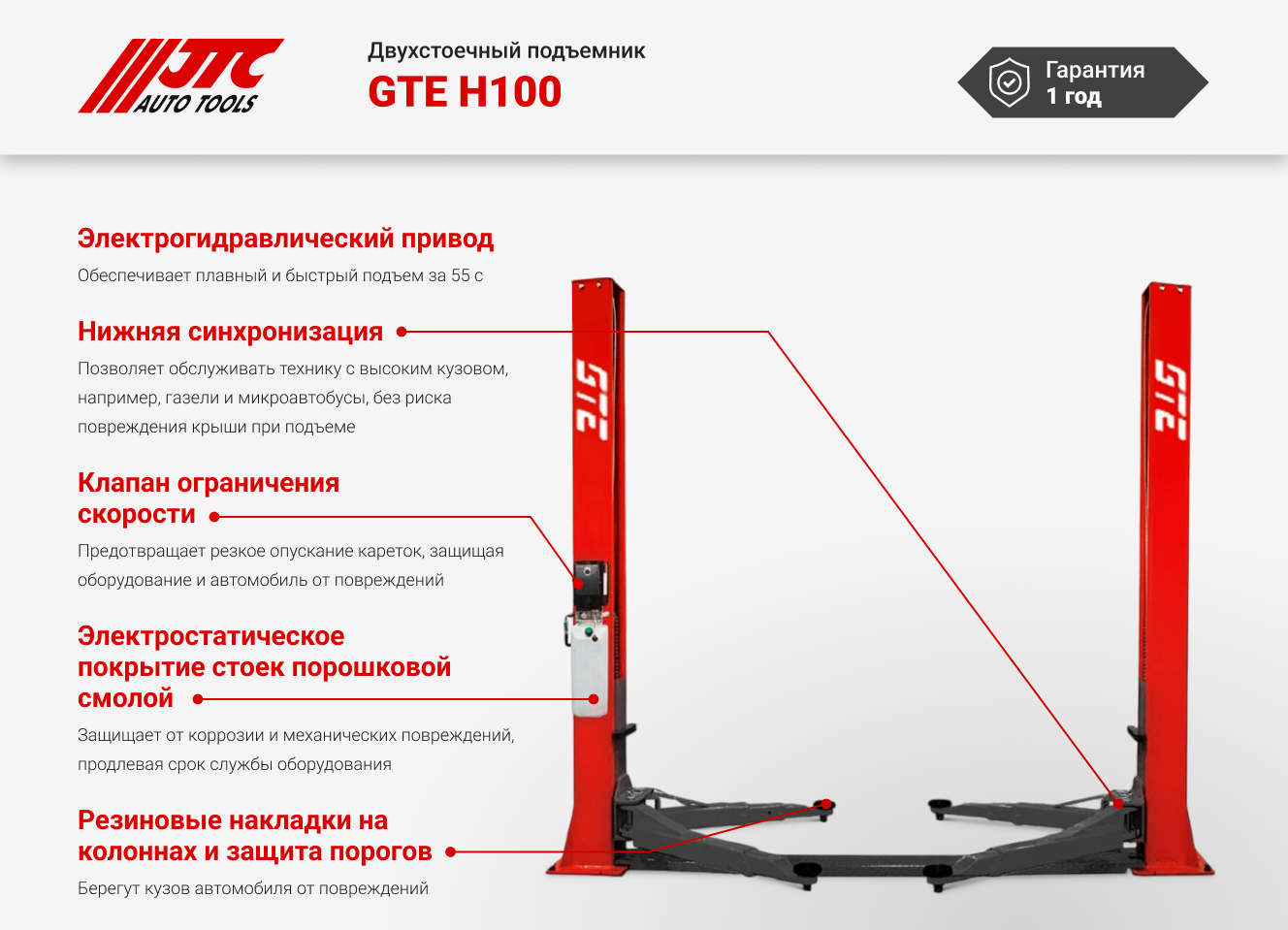 - Подъемник двухстоечный 4Т с нижней синхронизацией GTE-H100