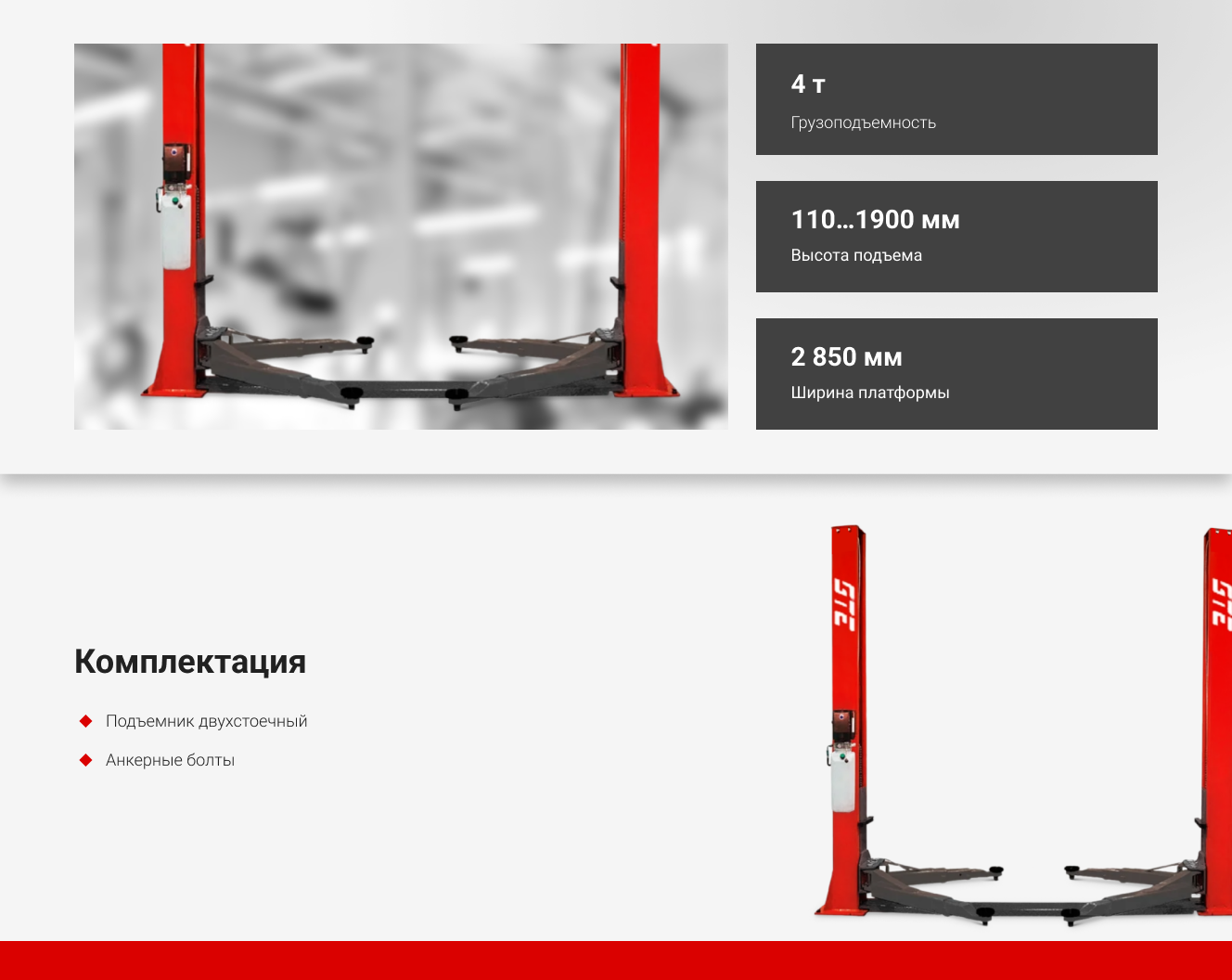 - Подъемник двухстоечный 4Т с верхней синхронизацией GTE-B201