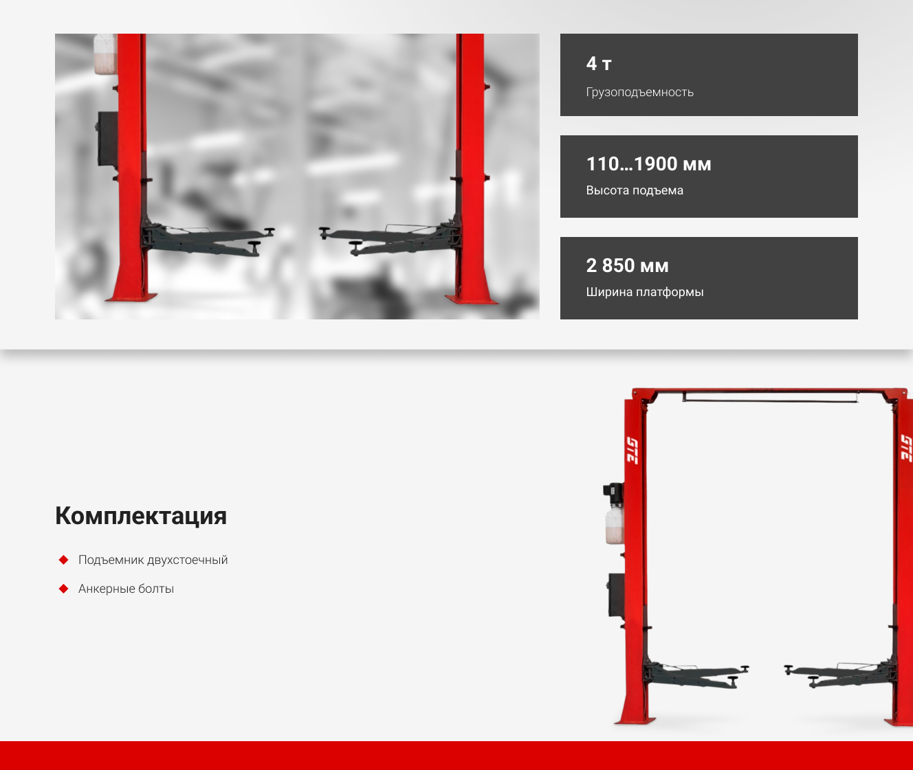 - Подъемник двухстоечный 4Т с верхней синхронизацией GTE-B202