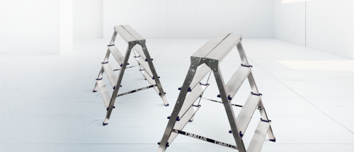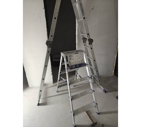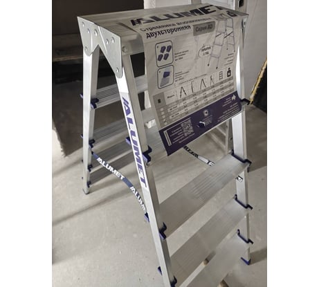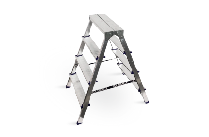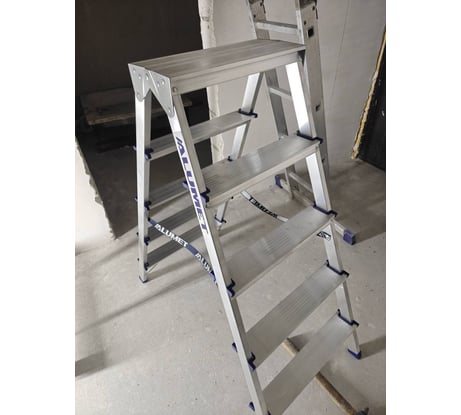 Стремянка алюминиевая двухсторонняя представляет собой свободностоящую переносную лестницу, сужающуюся к верху, имеющую две стороны для подъема на высоту.