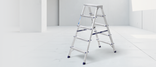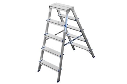 Стремянка алюминиевая двухсторонняя представляет собой свободностоящую переносную лестницу, сужающуюся к верху, имеющую две стороны для подъема на высоту.