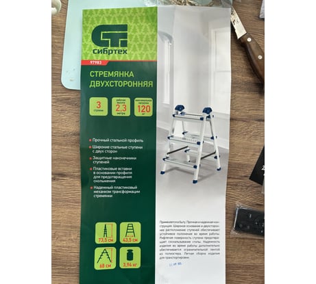 Двухсторонняя стремянка СИБРТЕХ 2 ступени 97982 подойдет для выполнения различных бытовых работ.
