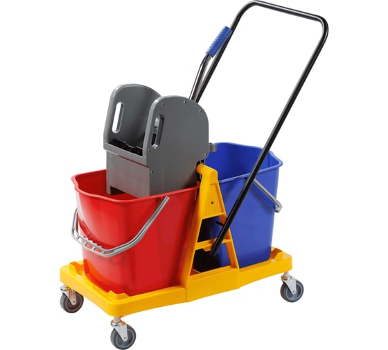Двухведёрная тележка H0208 используется для уборки любых помещений, как для основной, так и поддерживающей в течении дня.
