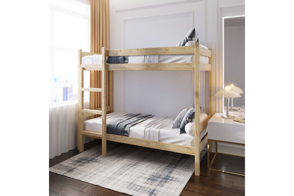 Двухъярусная кровать Solarius из массива сосны с ортопедическим основанием, 190x80 см (габариты 200x90), без покрытия dvuh80190-orto
