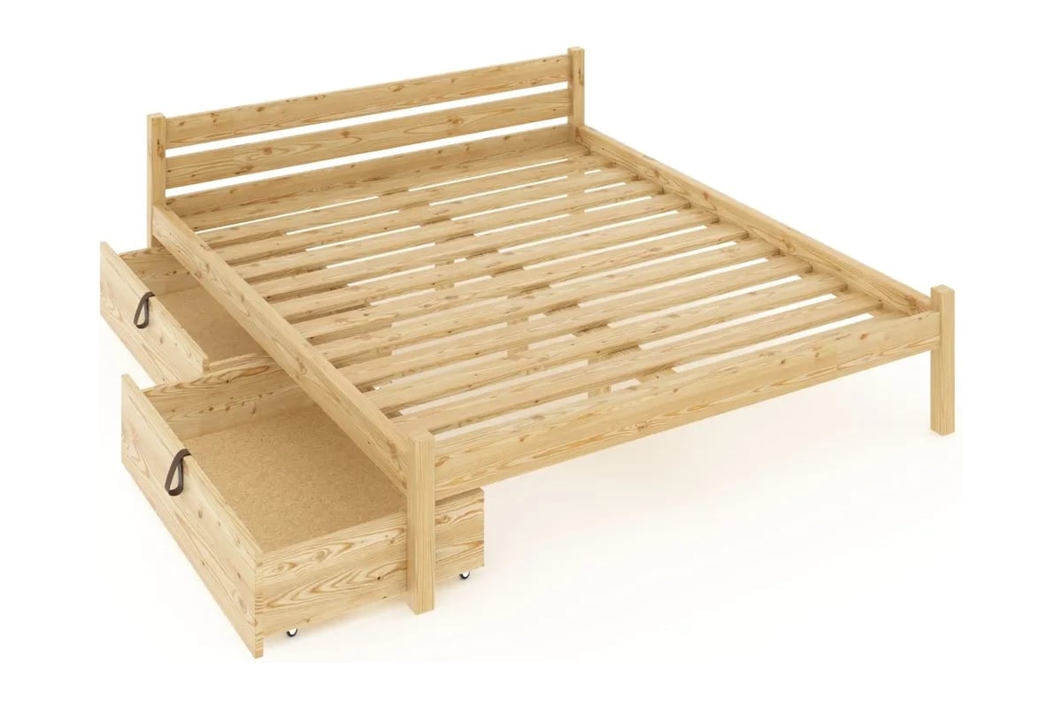 Двуспальная кровать Solarius Классика из массива сосны с реечным основанием 200x150 см (габариты 210x160), с четырьмя выкатными ящиками, лакированная 150kllak-4yash
