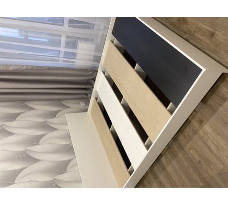 Все детали напилены со сколами, клей от кромки не убран. Конструкция не продумана, у кровати нет жесткости, вся болтается. Венцом этого произведения стало основание для матраса из обрезков разного цвета. Отношение к клиенту отвратительное! Просто продают обрезки в виде чего-то похожего на кровать.