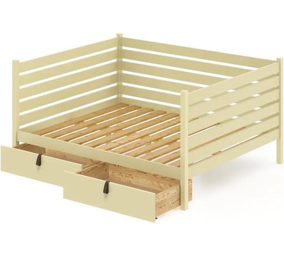 Двуспальная тахта Solarius из массива сосны с реечным основанием и высокими бортиками, 160x170 см (габариты 170x180), с двумя выкатными ящиками, цвет ванили tahta-spin160-170van-2yash