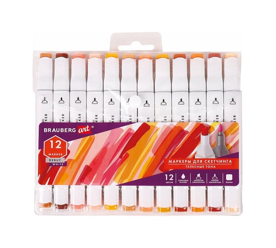Двусторонние маркеры для скетчинга BRAUBERG ART DEBUT WHITE, набор 12 шт, телесные цвета 152137 предназначены для творчества.