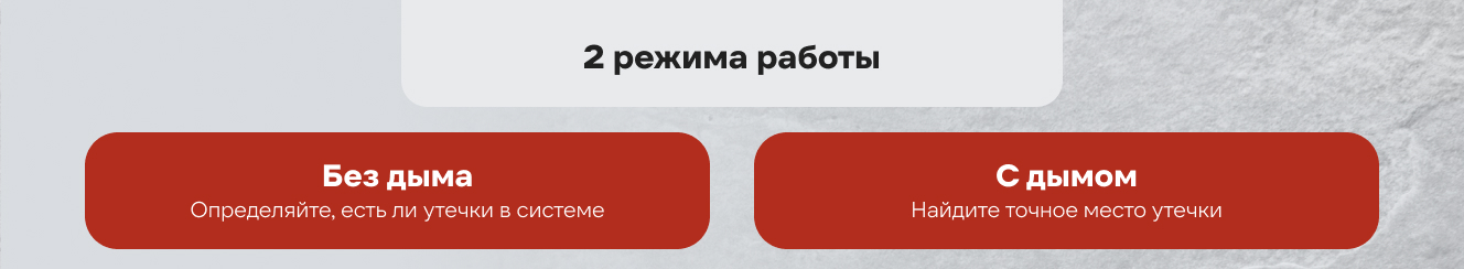 - Два режима работы: в режиме «Воздух» вы можете быстро определить наличие утечки без использования масла, что делает его идеальным для быстрой оценки Режим дыма позволяет точно определить место утечки Эта двойная функциональность дает вам возможность выбрать наиболее подходящий подход для ваших нужд, обеспечивая тщательную и точную диагностику