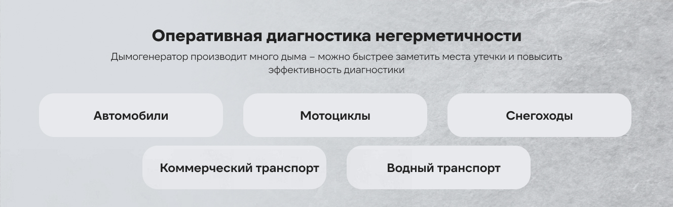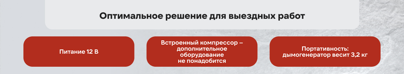 - Большое количество дыма Большее количество дыма позволяет быстрее обнаружить утечки и повысить эффективность диагностики