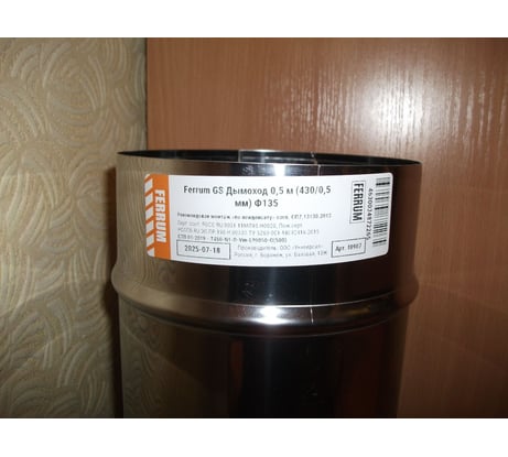 Дымоходная труба FERRUM 0.5 м, ф135, сталь AISI 430, толщина стали 0.5 мм f0907