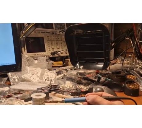 Поставил этот дымоуловитель над рабочим столом, где постоянно паяю микросхемы и провода. Раньше всё помещение было в дыму от флюса, теперь воздух чистый