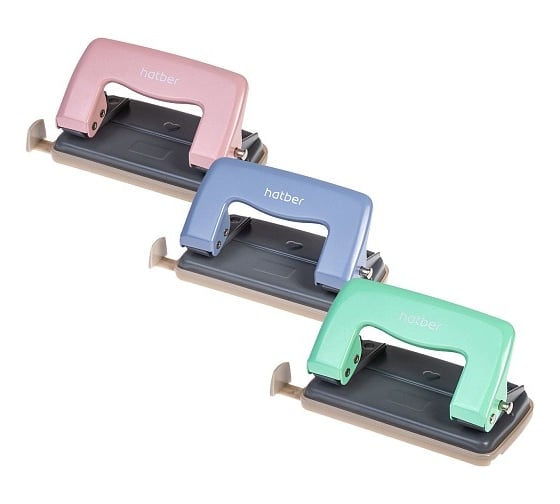 Дырокол Hatber Record металлический, 12л с линейкой Ассорти, 12шт. в 092222