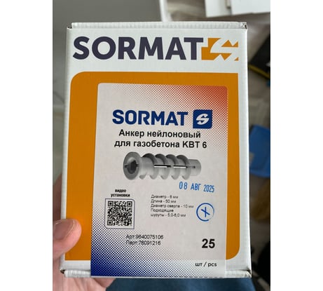 Вопросы и ответы о дюбеле для газобетона SORMAT КВТ 6 25 шт SOR_75106