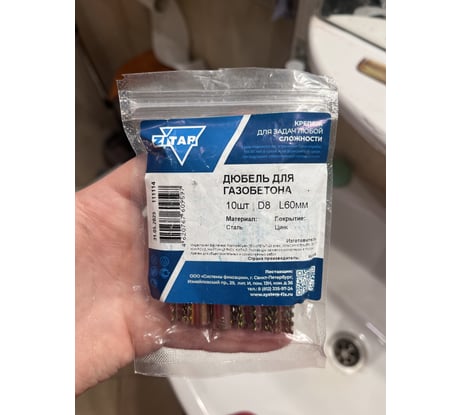 Дюбель хороший, доступен по цене. Держит надежно. Наружный диаметр - 10мм, внутренний диаметр - 8мм. Важно понимать, что маркировка нейлоновых и металлических дюбелей не совсем соответствует друг другу. Так, для нейлоновых дюбелей диаметром 8мм рекомендованный диаметр шурупа составляет 4,5-5,5мм. А металлическому дюбелю для газобетона с маркировкой 8мм требуется шуруп диаметром 6-7,5мм. При этом шуруп диаметром 6мм входит в дюбель 8*60 примерно на 3 см без какого-либо сцепления с дюбелем, т.к. внутренний диаметр последнего около 8 мм. Это так же нужно учитывать при подборе длины шурупа. На фото дюбели с одинаковой маркировкой 8*60.