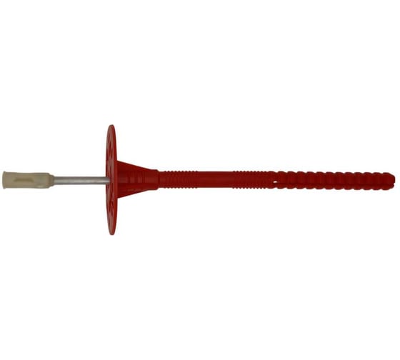 Дюбель для изоляции с термогвоздём Крепстор предназначен для надёжного крепления теплоизоляционных материалов при фасадных работах. Подходит для монтажа утеплителя в системах навесных вентилируемых фасадов и СФТК. Корпус выполнен из полипропилена, гвоздь из углеродистой стали с антикоррозионным цинковым покрытием. Термоголовка обеспечивает терморазрыв и снижает риск образования конденсата и разрушения штукатурного слоя. Увеличенная распорная зона позволяет использовать дюбель в пустотелых основаниях. Грибовидная шляпка обеспечивает плотный прижим утеплителя, а насечки и усиленные рёбра жёсткости повышают прочность крепления. Монтаж производится методом сквозной установки. Подходит для бетона, газобетона, керамзитобетона, полнотелого и пустотелого кирпича.