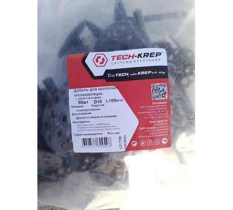 Отзывы о дюбеле для теплоизоляции с пластиковым гвоздём 10х100, 50шт - пакет Tech-Krep 101708