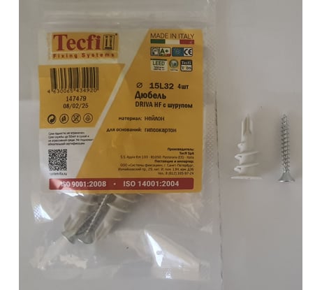 Отзывы о дюбеле DRIVA с шурупом Tecfi HF 15x32 4 шт 147479