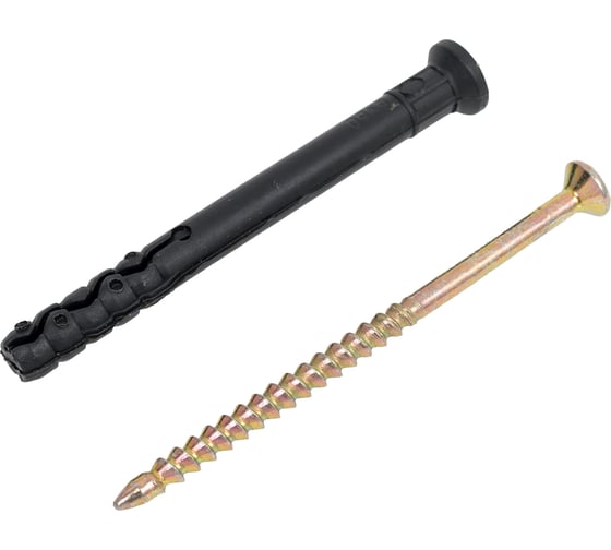 Дюбель гвоздь с потайным бортиком 6х60мм применяется для крепления к бетону, полнотелым материалам, кирпичу с пустотами, пенобетону всевозможных деревянных деталей, включая обрешетку под штукатурку, рамы, стыковочные стеновые или штукатурные профили, плинтуса, настенные уголки, а также кабельные каналы, зажимы для кабеля и труб, тонколистовую сталь и другие элементы. Изделие комплектуется из дюбеля, состоящего из двух распорных сегментов и стопорного бортика, предотвращающего проваливание дюбеля в отверстие (стопорный бортик бывает потайной и грибовидный), а также гвоздя с ударной резьбой.