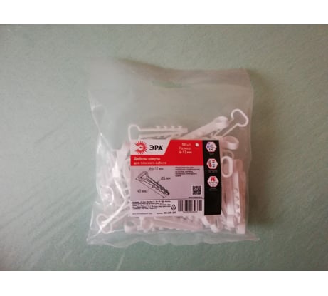 Дюбель хомут ЭРА NO225207 для плоского кабеля 6-12 мм белый (50 штук) Б0066300