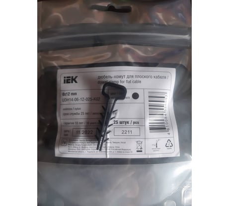 Дюбель-хомут IEK 6x12 мм, для плоского кабеля, нейлон, черный, 25 шт. UDH14-06-12-025-K02