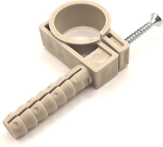 Дюбель-хомут из полипропилена служит для быстрого и надёжного крепления труб, кабелей или проводов диаметром 25 мм к бетонным, каменным, кирпичным и другим твёрдым основаниям, а также – к пустотелым кирпичам и пустотелым блокам. Обеспечивает лёгкий монтаж. Хомут уже с дюбелем и укомплектован шурупом нужной длины. Вам остается только просверлить отверстие, вставить хомут и вкрутить шуруп. Дюбель-хомут устойчив к механическим нагрузкам и гидроударам. Разъемное крепление позволяет легко и быстро вставить трубу в хомут. Наружное, смещенное расположение шурупа и эластичность хомута позволяют легко закрепить в нем трубу уже проложенной магистрали, без смещения оси. Конструкция хомута позволяет крепить в нем трубы с увеличенным наружным диаметром. Благодаря хомутному типу крепления может быть использован как подвижная и как неподвижная опора. Изделие предназначено для эксплуатации в широком диапазоне температур, учитывающих условия эксплуатации трубопроводов для горячего водоснабжения и отопления.