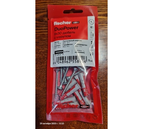 Отзывы о дюбеле с шурупом Fischer DUOPOWER 6x30 (12шт.) 577316