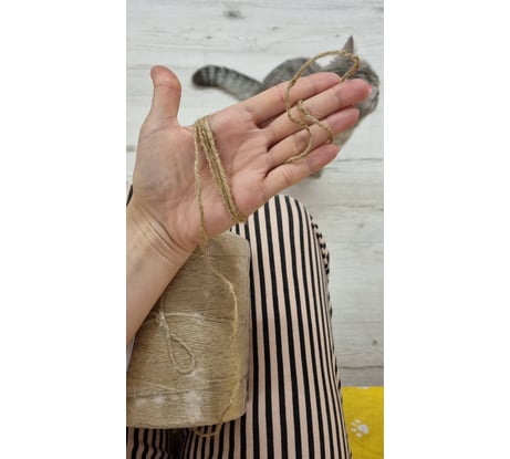 Отличный джут, без запаха, нить ровная. Не первый раз покупаю у этого продавца, рекомендую! Брала для вязания ковриков, котику нравиться!