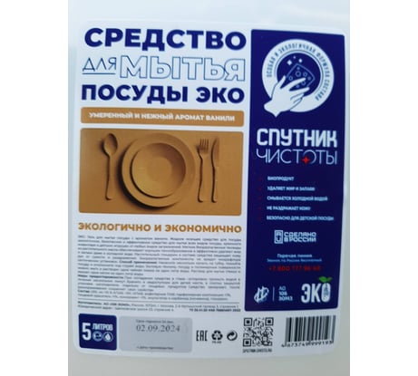 Гель для мытья посуды Спутник чистоты ЭКО с ароматом ванили, 5 л, ПНД 4673749999193