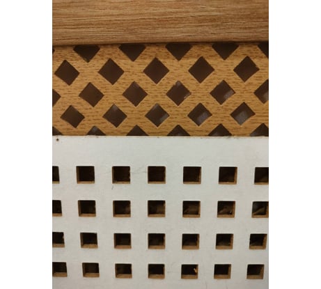 Покупал взамен отжившего своё экрана, которого выгнуло от жары. На новом экране перфорация довольно крупная, МДФ осталось меньше, чем на предыдущем (белый на фото), думаю что поведёт его ещё быстрее
