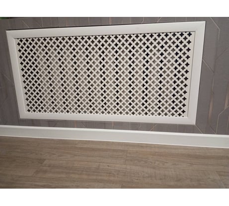 Изготовлен из экологичного и высококачественного МДФ, не деформирующимся под воздействием высоких температур. За счет перфорации теплоотдача остается на том же уровне, что до установки экрана.