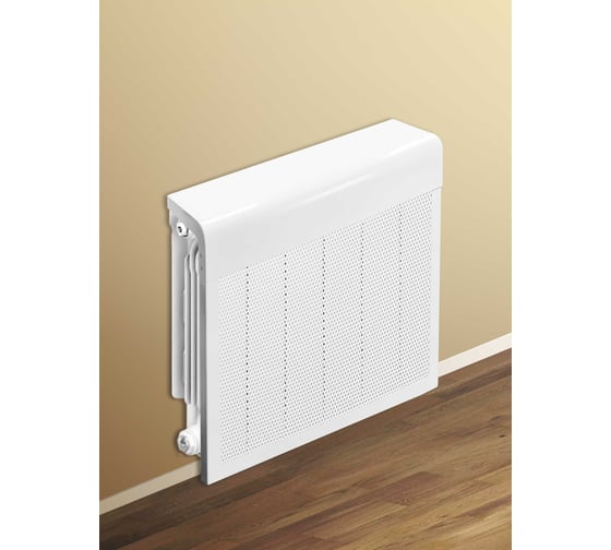 Экран на батарею ООО Вентмаркет 650х300х150 мм, без верхней перфорации, полукруглый, разборный, цвет белый SR650300
