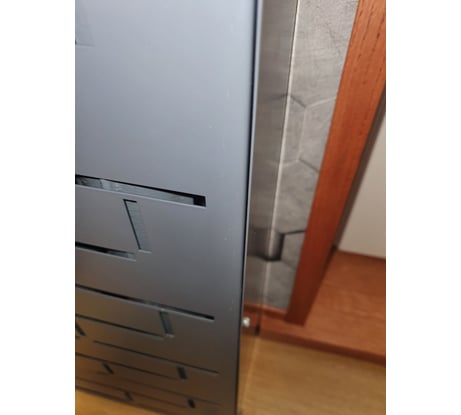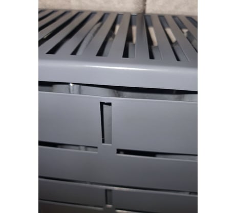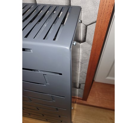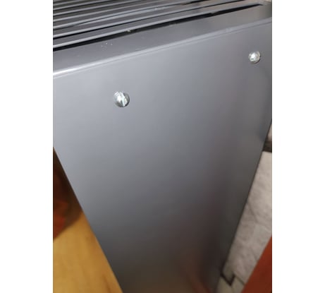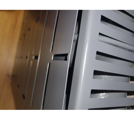 Качество покраски не очень, виден мусор, покрашенный вместе с радиатором. Углы защищены шлифмашиной, заметно и бросается в глаза, в одном месте погнут. Задумка хорошая, а вот исполнение не очень. При монтаже боковин (купленных здесь же) видны щели, смотрится топорно. Крепеж в комплекте разный: с одной стороны шлиц, с другой – крестовина!!! Альтернативы особой нет, фанера и МДФ со временем выглядят ужасно, проверено.