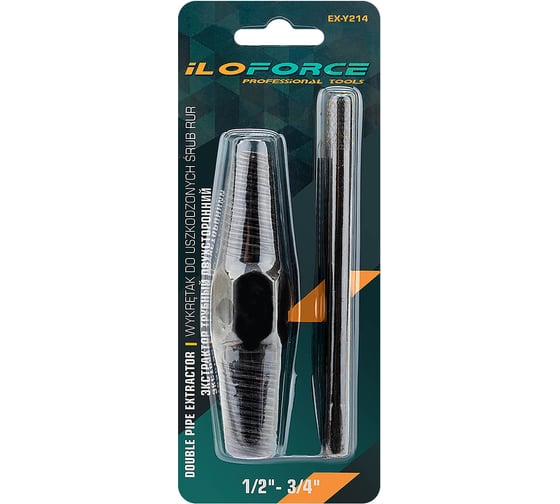 Экстрактор двухсторонний для извлечения сломанной резьбы из труб 1/2-3/4 iLOFORCE в комплекте с воротком, набор 2пр. IF-EX-Y214(65780)