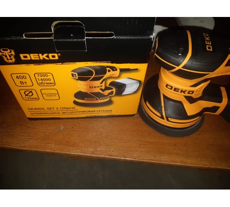 Эксцентриковая сетевая шлифмашина DEKO DK400G с набором оснастки 20шт, 400Вт 085-1100 предназначена для шлифовки больших поверхностей из древесины, пластмассы и металлических материалов, а также окрашенных поверхностей.