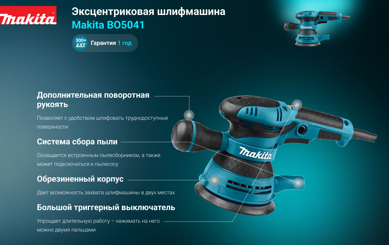 Профессионал для безупречной поверхности Спустя год использования: почему это лучшая инвестиция для качественной шлифовки. Я профессионально занимаюсь мебельным производством и отделкой, и для меня ключевой критерий — это безупречное качество поверхности после шлифовки. Makita BO5041 не просто оправдала ожидания, она их превзошла. Это инструмент, который превращает сложную и тяжелую работу в точный и контролируемый процесс. Достоинства, которые выделяют ее среди других: Мощность и стабильность работы. Двигатель на 300 Вт может показаться скромным, но его мощности более чем достаточно для уверенной работы под нагрузкой. Машина не «закапывается» и не теряет обороты даже при шлифовке твердых пород дерева или снятии старого лака. Потрясающая система пылеудаления. Это один из главных козырей! Пылесборник (мешок) работает на удивление эффективно, собирая до 95% пыли. При подключении к строительному пылесосу (адаптер в комплекте) результат становится практически идеальным — пыли в воздухе почти нет, что критически важно для здоровья и чистоты в мастерской. Идеальная эргономика и низкий уровень вибрации. Инструмент невероятно удобно лежит в руке. Резиновые накладки по всему корпусу обеспечивают надежный хват. Вибрации минимальны даже на максимальных оборотах, что позволяет работать часами без усталости в руках. Продуманная и быстрая смена оснастки. Система крепления на липучке (Hook & Loop) очень качественная. Однако, я докупил переходную липучку, так как родная макитовская стоит очень дорого, чтобы менять. Диски держатся надежно, не слетают, а их замена занимает секунды. Пластиковая подошва отличного качества, не царапает поверхность. Компактность и маневренность. Небольшой размер (шлифовальная тарелка 125 мм) позволяет комфортно работать в труднодоступных местах, шлифовать криволинейные поверхности и края. Плавная регулировка оборотов. Круглый регулятор на корпусе позволяет точно подобрать скорость для любого материала: от низких для лака и мягкого дерева до высоких для грубого снятия материала. Недостатки, которые стоит учесть: Как и любой профессиональный инструмент Makita, эта модель стоит недешево. Однако ее цена полностью оправдана надежностью, эффективностью и качеством результата. На высоких оборотах машина довольно громкая, как и большинство ЭШМ. Работа без средств защиты слуха (наушников) будет некомфортной. Пылесборник требует частой очистки. При активной работе мелкий пылесборник заполняется довольно быстро. Но это решается подключением к пылесосу, для чего и предусмотрен адаптер. Для каких задач идеальна Makita BO5041? Финишное и межслойное шлифование изделий из дерева, мебели. Удаление старого лака и краски с поверхностей без повреждения основы. Шлифовка шпатлевки и выравнивание поверхностей перед покраской. Полировка автомобильных кузовов (при использовании соответствующих паст и мягких подушек).