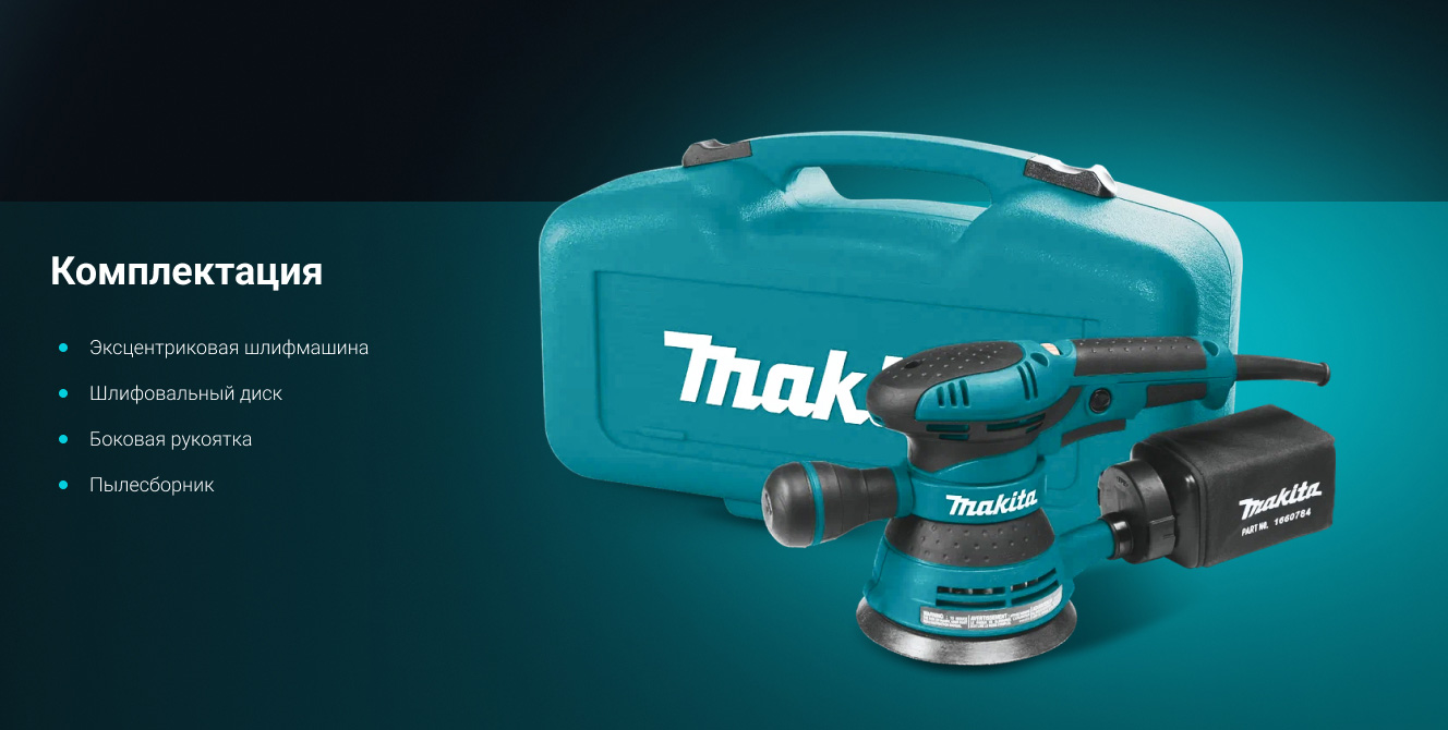 Эксцентриковая шлифмашина Makita BO5041 сконструирована для профессионального использования. Область применения - выполнение шлифовальных и полировальных работ на различных поверхностях. Для поддержания в чистоте рабочего места, возможно подсоединение пылесборника или пылесоса.
