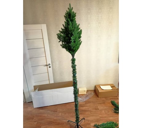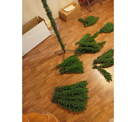 Дома собрал. Комплектация оказалась полная. Повезло. Ель в целом хорошая.