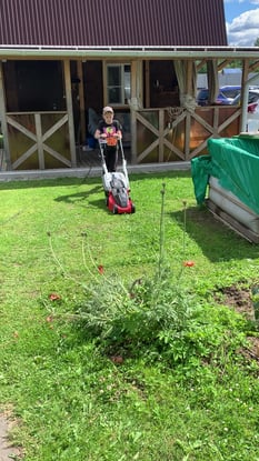 Заказ №2305-100128-94906. Покупал со скидкой в 2023 году. Два сезона уже выручает нас на даче.Участок газона у нас не большой, но ручной бензиновой косилкой получалось не очень красиво оформлять лужайку, получался срез разной высоты. Решили купить недорогую газонокосилку на колесах. Выбор пал на эту модель, понравились характеристики и цена по акции. Не разочаровались в покупке: три уровня скашивания по высоте, скашивает чисто, удобный травосборник (можно быстро снять, опустошить и поставить на место), защита от случайного включения, легкая в управлении (жена попробовала косить, понравилось, теперь только она ей пользуется), складная ручка и небольшие габариты способствуют удобному хранению зимой в гараже. Пользуемся по рекомендации: 10-15 минут работы, 5 минут перерыв (для остывания двигателя и заодно опустошить травосборник). Единственный, но весомый минус - нет ножей запасных для этой модели.