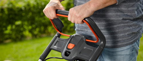 - Рукоятка ErgoTec Plus Позволяет с удобством управлять косилкой, а мягкие накладки защищают от мозолей